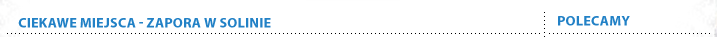 Tama solińska o dł. 664 i wys. 82 m (od podstawy do korony) i potężnej kubaturze ok. 760 tys. m3 betonu zbudowana w latach 1961 - 1968 jest największą w Polsce zaporą betonową typu ciężkiego. Powstała w celu ujarzmienia groźnego ongiś (zwłaszcza wiosną i jesienią) Sanu. Dziś przy nadmiarze opadów zapobiega powodziom, a w czasie suszy reguluje niedobór wody w korycie tej rzeki. Kryje ona ciekawe wnętrze z licznymi korytarzami, które można zwiedzać z przewodnikami zakładowymi. W położonym u jej stóp budynku elektrowni pracują 4 turbinami Francisa, które po ostatniej modernizacji osiągają ponad 200 MW mocy. Spiętrzenie do 60 m głębokości daje potężną pojemność zbiornika ok. 500 mln m3, który jest wielkim rezerwuarem wody pitnej w 1 klasie czystości.